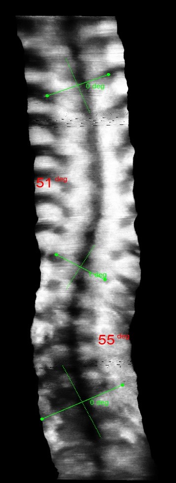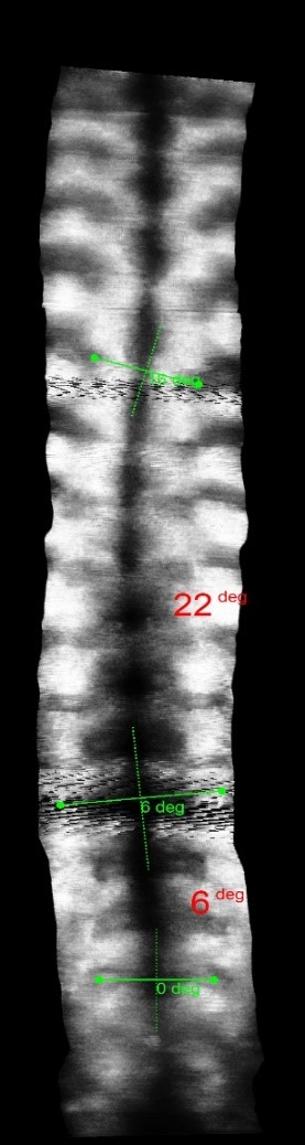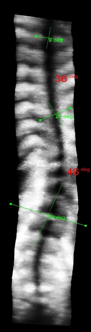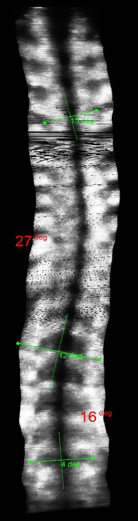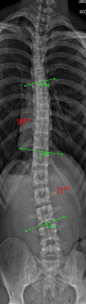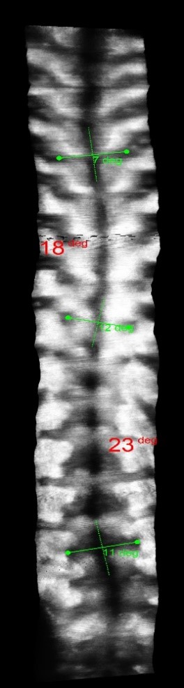 In general, the neck area is narrow and difficult to scan, so normally the operator does not scan over the neck area. Even though we can use ultrasound images for measurements (and X-rays too), the neck moves easily when scanning, so the angle cannot be very accurate. When we change the posture of the neck a little, the angle can change a lot. We have heard from some clinicians who are experts in scoliosis, they do not care so much about the angle of the upper chest and neck area.