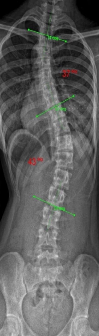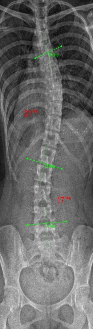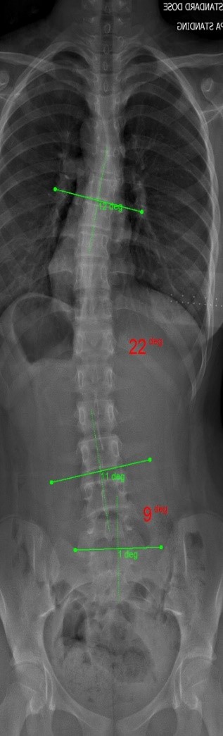 X-rays are the current gold standard for scoliosis diagnosis, while MR is rarely used for quantitative detection of scoliosis. That is because MR requires the patient to be scanned in lying position, and it is time–consuming and expensive.