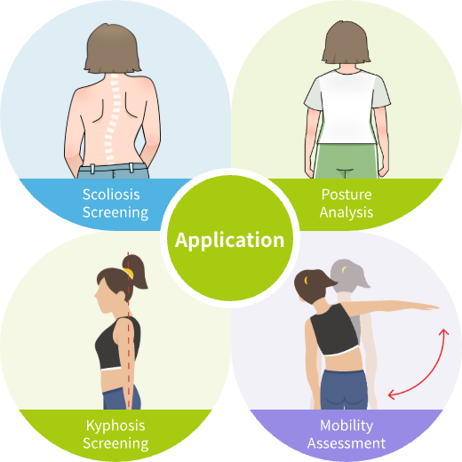 It uses a 6-axis acceleration sensor and combines gravity inclination detection technology to quickly measure trunk rotation angle, body activity and posture abnormality detection.