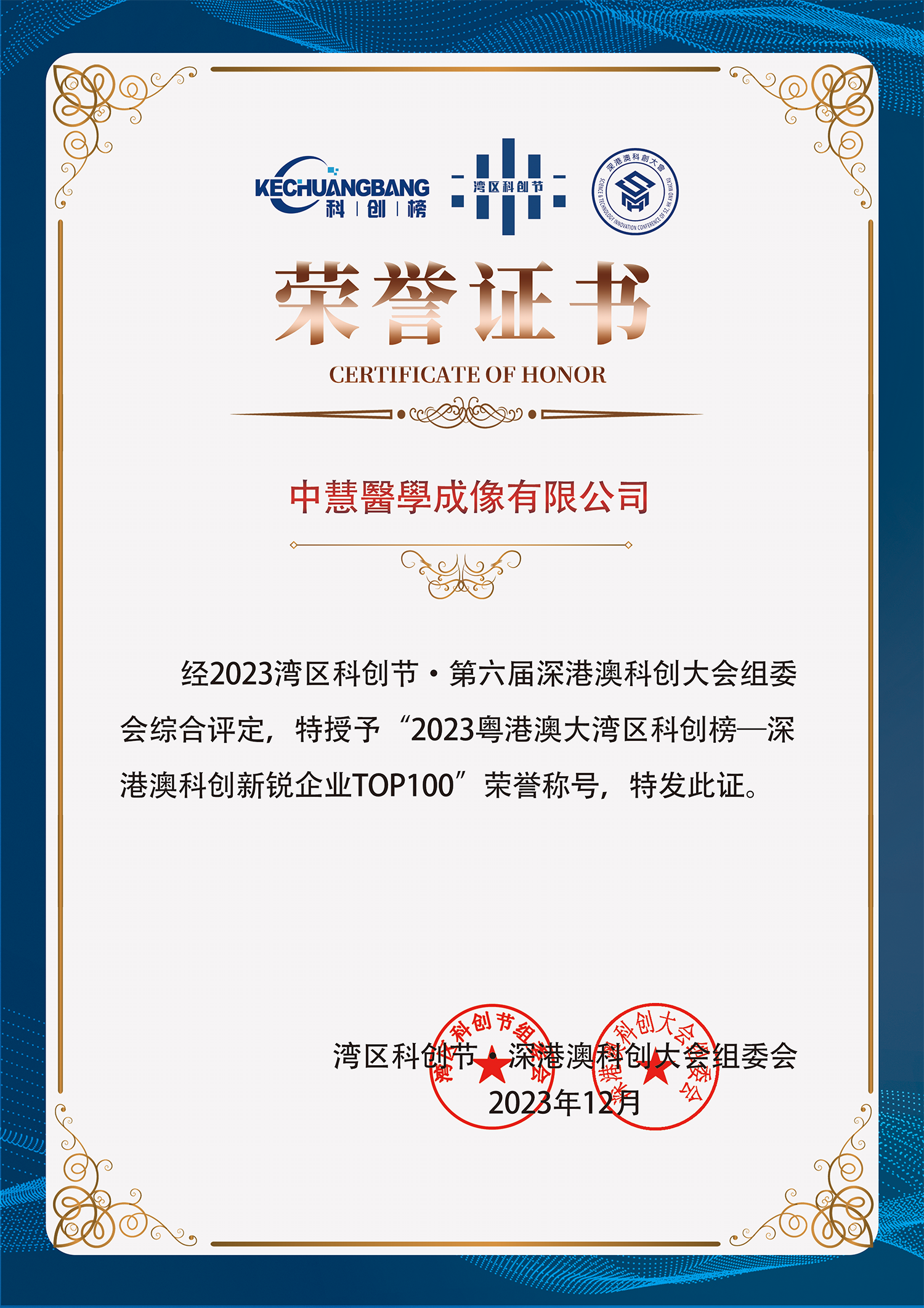 2023湾区科创节•第六届深港澳科创大会发布科创榜,中慧医学成像成功入选2023深港澳科创新锐企业百强榜单!