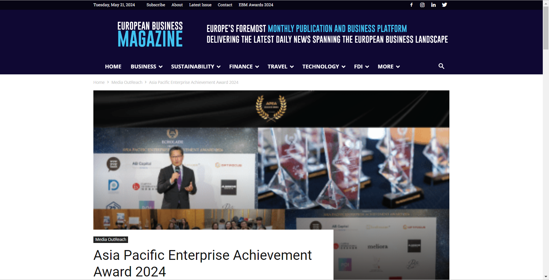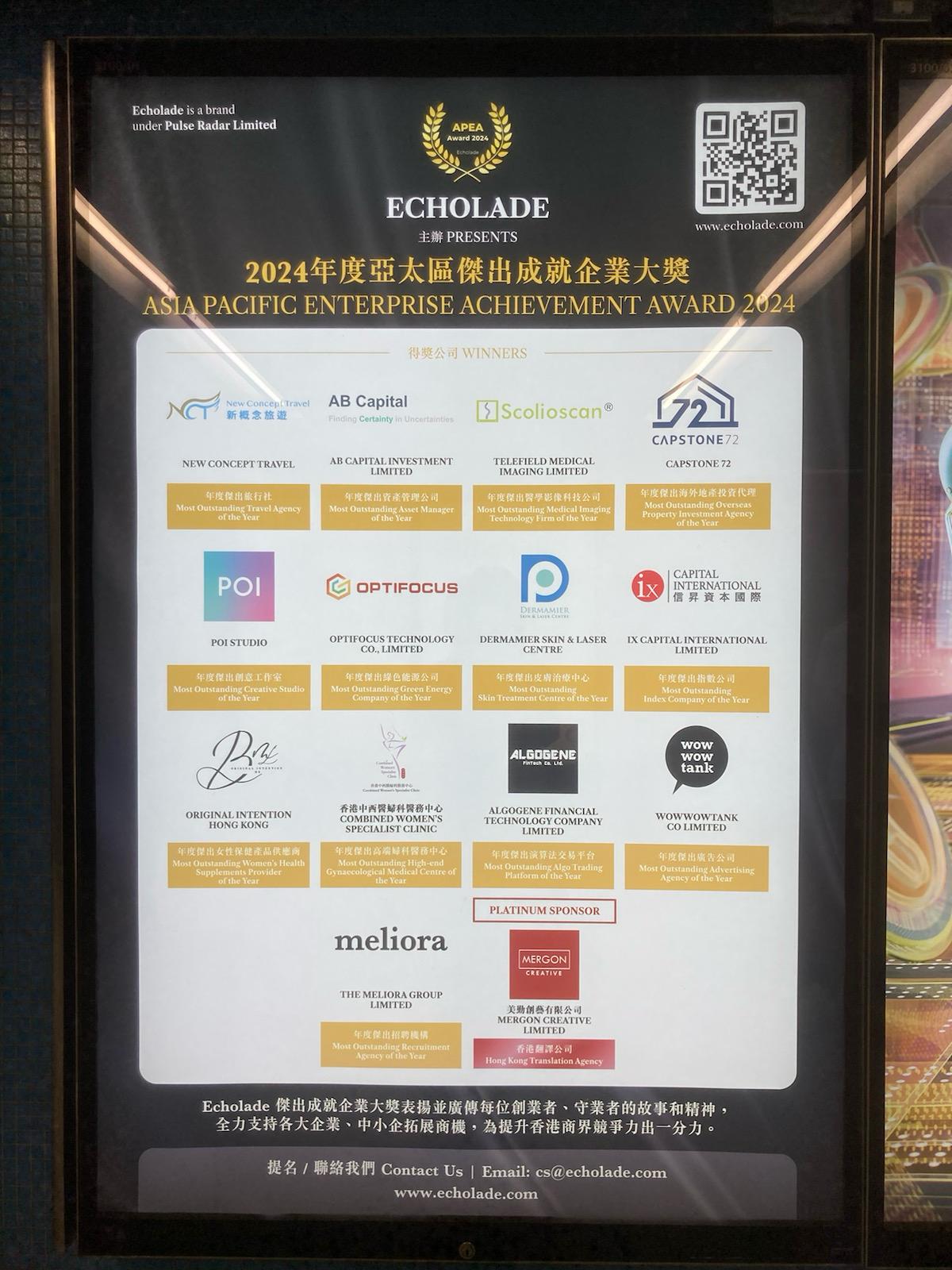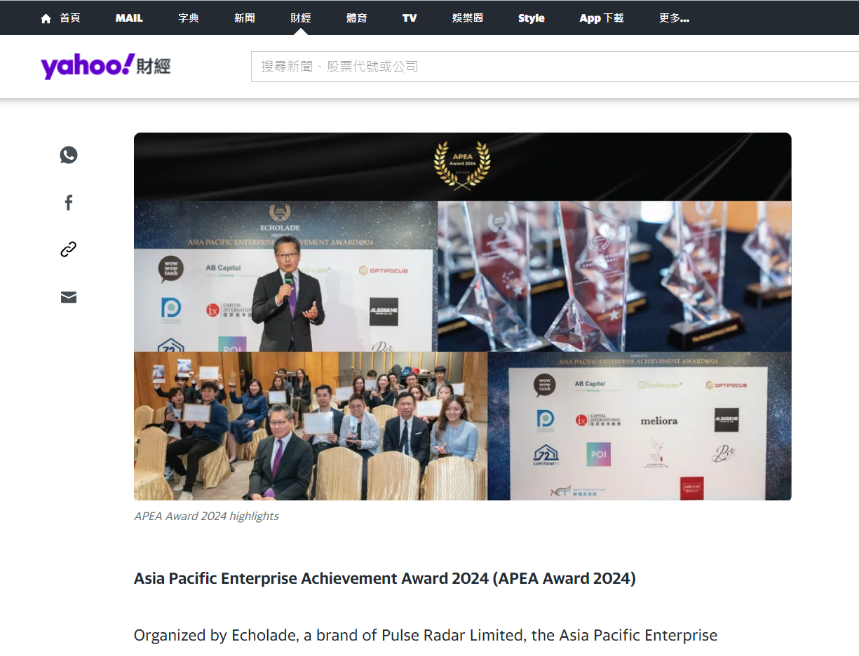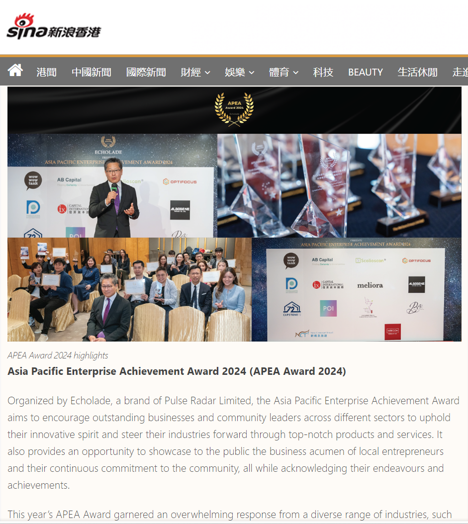 此项大奖由香港公关媒体Echolade设立,旨在表彰亚太地区各界杰出企业及社会领袖,鼓励他们秉持积极创新的精神,通过提供优质产品和服务推动行业发展,同时向社会公众展现商业领袖的创业精神和积极社会影响。