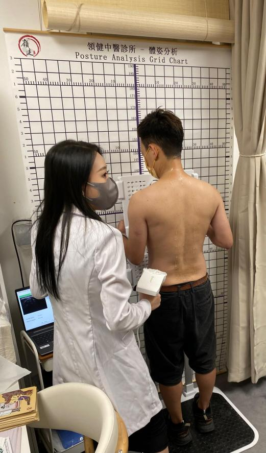 領健中醫師根據Scolioscan® SCN201采集的數據結果及患者自身的情況對癥下藥,采用推拿、針灸、正骨、儀器牽引等方案,對具體部位進行整脊復位。中醫師以傳統按摩手法矯正「筋出槽,骨錯縫」的問題,重新整合脊柱序列與結構,恢復正常力學平衡繼而穩定脊柱;或通過針灸疏通相關的筋經,松解背部脊柱兩旁的筋結點,減低對脊柱的拉力,更能行氣活血,促進勞損部位的自我修補;或配合現代專業醫療儀器,以牽引減輕脊椎局部壓力,拉開椎間距離,達到改善脊柱曲線的治療效果。
