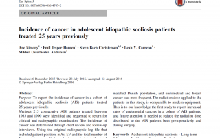 丹麥25年跟蹤研究揭示X光輻射致使青少年特發性脊柱側彎患者的患癌風險高出常人近5倍