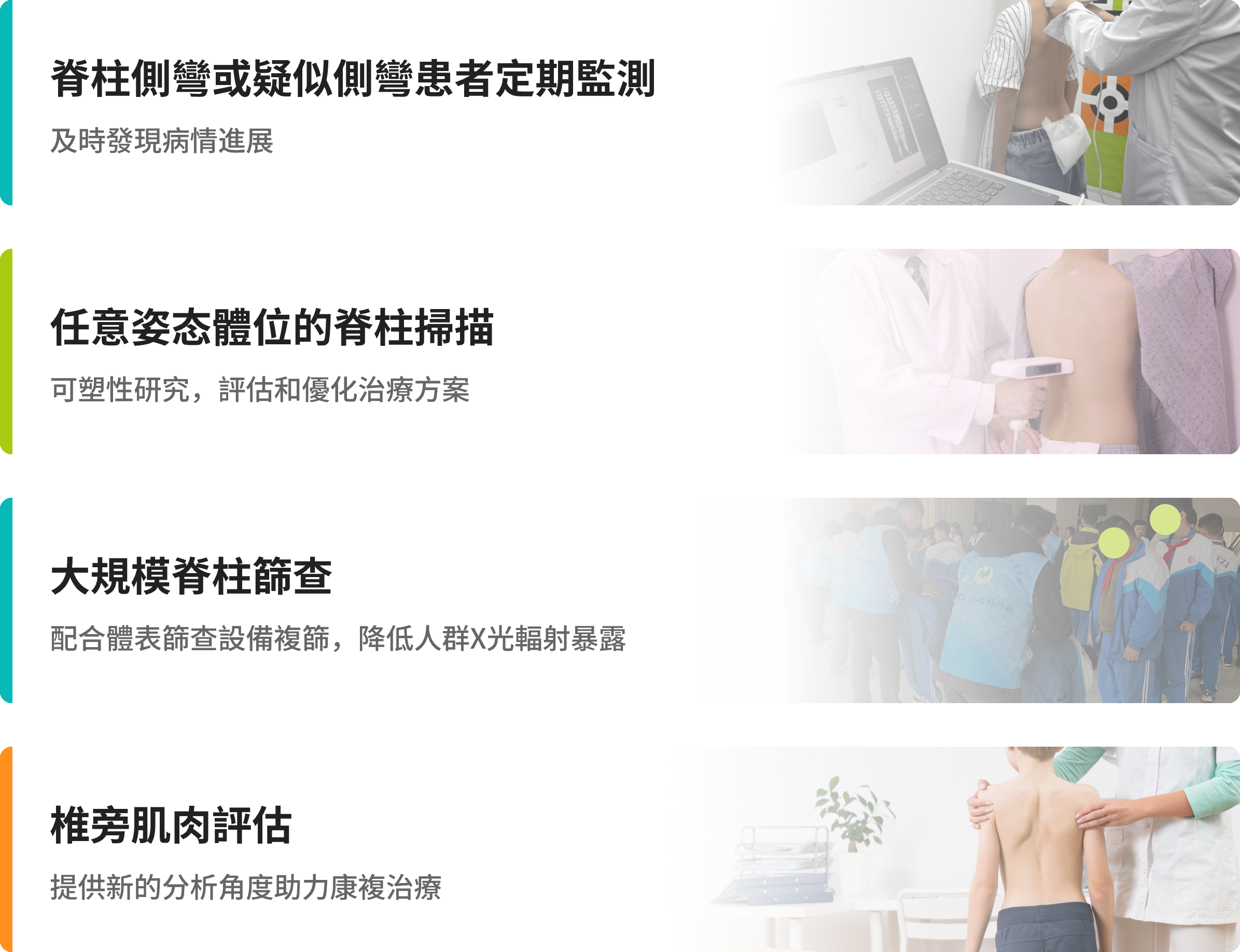 “ 獲取脊柱T1-L5全長冠狀位超聲圖像•定量評估脊柱側彎程度 ”